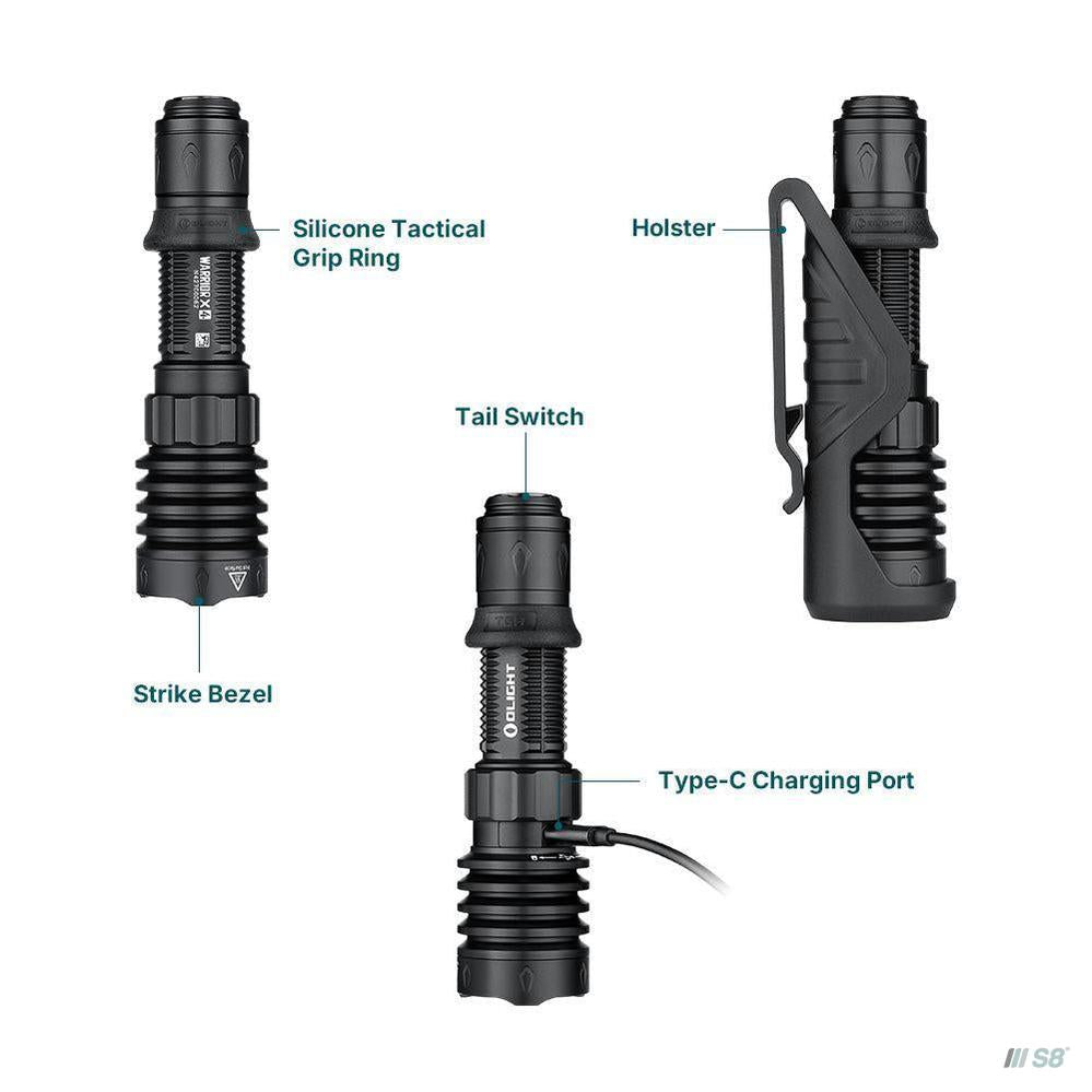 Olight Warrior X 4 Kit Rechargeable LED Tactical Flashlight Hunting Kit