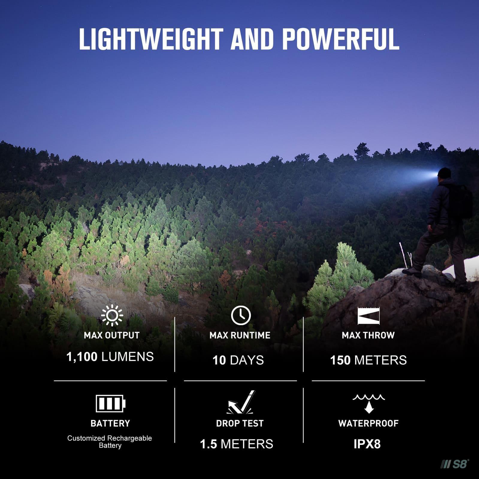 • Tiny but Mighty: As small as your thumb but boasting a max output of 1,100 lumens.